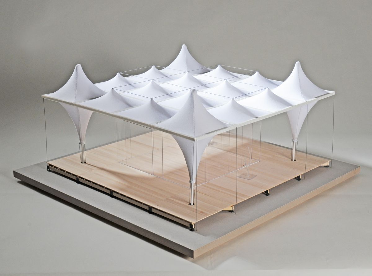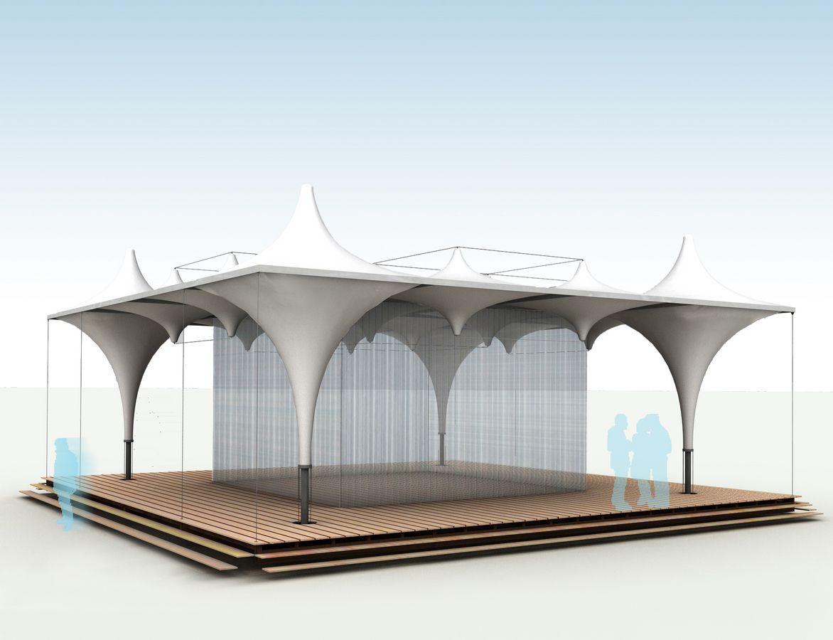 Die Masterarbeit ist 2011 an der Professur für Entwerfen und Tragwerkkonstruktion entstanden. Ihre Aufgabenstellung ergibt sich aus der Bearbeitung des von der Universität Kassel ausgelobten studentischen Wettbewerbes „documenta center of information and communication“. Im Ergebnis entsteht ein flexibles, modulares Pavillonsystem, das attraktive Verwendungmöglichkeiten für große und kleine Veranstaltungen auch abseits der documenta bietet. Materialeffizienz, Nachhaltigkeit und Gewichtseinsparung waren wesentliche Kriterien, denen der innovative Entwurf folgt, der auch ein digitales Modell integriert.