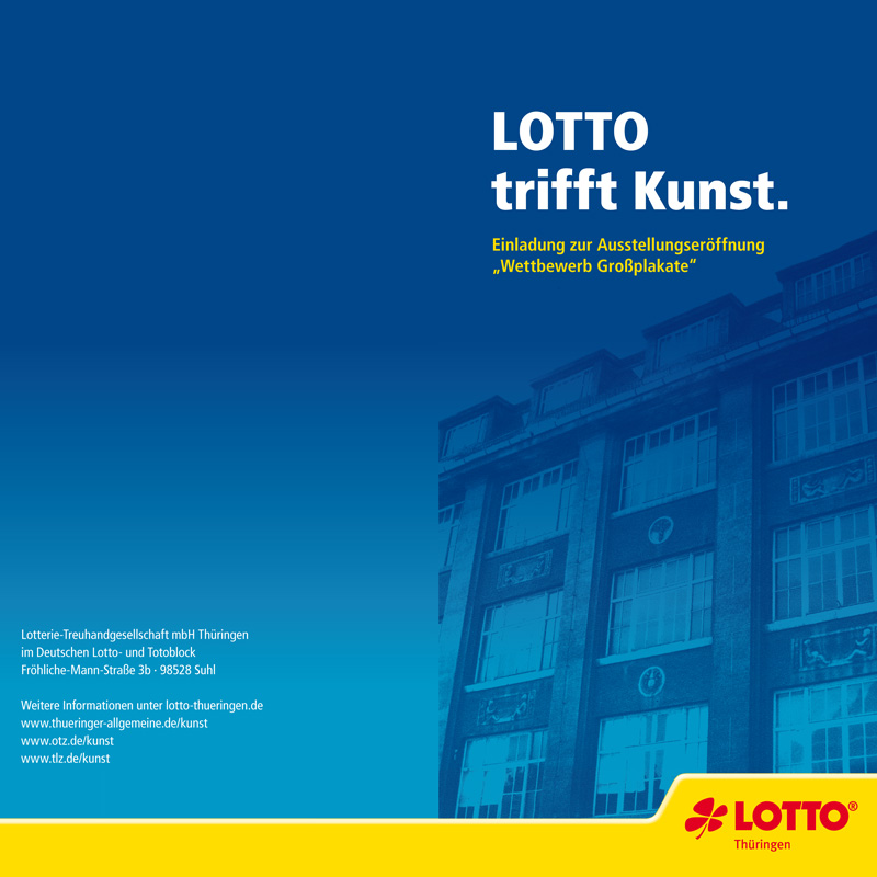 Die Ausstellung zeigt elf Bilder im Format 2,50 x 3,50 Meter von Thüringer Künstlern und Studierenden. Es handelt sich um Motive für Großplakate, die im Rahmen eines Wettbewerbs entstanden sind, den LOTTO Thüringen ausgeschrieben hat. Das Projekt wurde unter der Leitung von Prof. Dr. Achim Preiß, Bauhaus-Universität Weimar, durchgeführt.