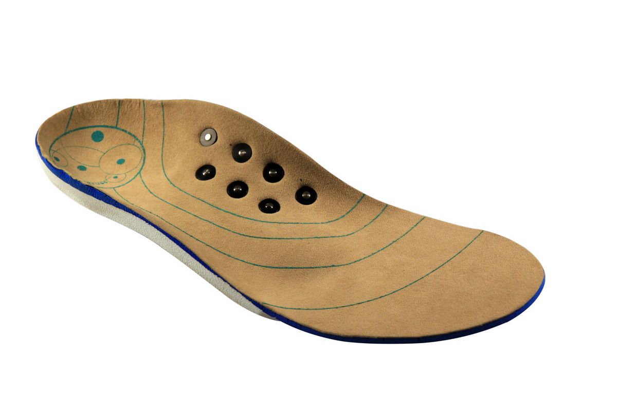 »Im Prinzip ist ›SenSole‹ ist ein taktiles Interface für den Fuß«, beschreibt Eric Geißler seine Erfindung. »Signale, die von den Fußsohlen aufgenommen werden, verarbeitet das Gehirn in spezieller Weise – sozusagen ›hoch aufgelöst‹. Diese Eigenschaft wollte ich nutzen.« In der Einlegesohle sind fünf kleine, jeweils zwei Zentimeter auseinander liegende Stifte eingebaut. Durch Magnetspulen werden die Stifte bewegt und stimulieren den empfindlichen Bereich des Fußgewölbes. So können Signale an die Nutzerin oder den Nutzer gesendet werden.
