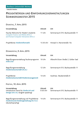 Projektbörsen & Einführungsveranstaltungen SoSe 2015