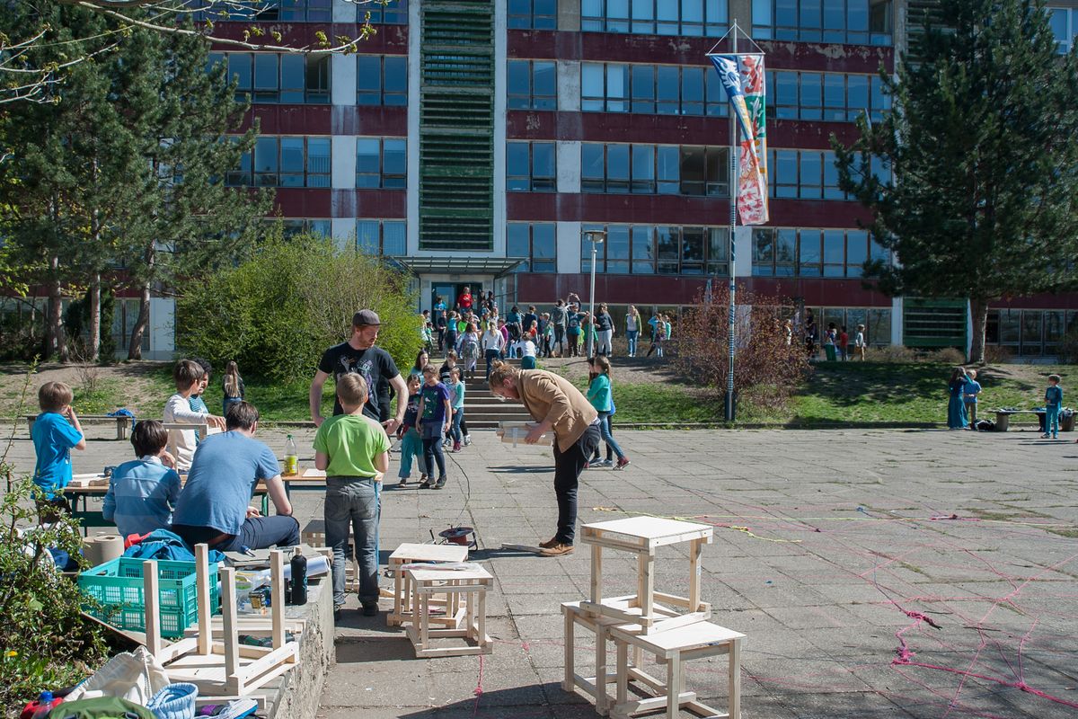 Studierende der Fakultät Architektur und Urbanistik haben einige Workshops begleitet, u.a. hinführend auf den Pavillon Moosaik. Dieser soll als sichtbares Zeichen für den Schulumbau in diesem Sommersemester entstehen. Für den Bau des Pavillons werden Spenden gesammelt.