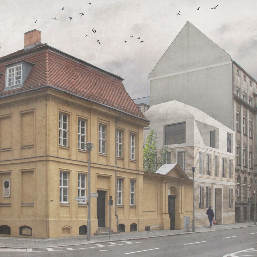 Ausgangspunkt für die Konzeptideen war die derzeitige Bestandssituation: In zentraler Lage im Berliner Regierungsviertel findet sich ein letztes Relikt der ursprünglichen barocken Stadterweiterung der Friedrichstadt aus dem 18. Jahrhundert. An der Kreuzung von Tauben- und Glinkastraße stehen, umringt von großmaßstäblicher Blockrandbebauung, zwei weitgehend identische zweigeschossige Pfarrhäuser mit Mansarddach in einem von einer Mauer umschlossenen Gartengrundstück. Ein drittes, ursprünglich ebenfalls zum Ensemble gehörendes Gebäude, in dem der Theologe, Philosoph und Mitbegründer der Berliner Universität Daniel Friedrich Schleiermacher (1768-1834) wohnte, ist im Zweiten Weltkrieg zerstört worden. Trotz dieses Verlustes blieb das in dieser Umgebung geradezu idyllisch wirkende Ensemble in den vergangenen 60 Jahren weitgehend unangetastet. Nun möchte die Kirchgemeinde die Stelle des zerstörten Gebäudes wieder bebauen. Es besteht Interesse, einen Neubau zu errichten, der dem besonderen städtebaulichen wie architektonischen Kontext Rechnung trägt.