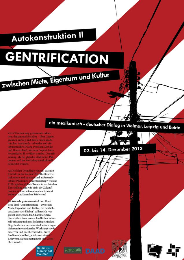Das Projekt geht aus der engen Partnerschaft des Studiengangs Urbanistik zur UNAM (Universidad Autonoma Nacional de Mexico) hervor. Schon zum zweiten Mal kommen jetzt Studierende aus Mexiko nach Weimar, um sich gemeinsam in einem ausschließlich von Studierenden »autokonstruierten« Workshop mit städtischen Themen auseinderzusetzen. Fachlich ist es an die Professur Sozialwissenschaftliche Stadtforschung an der Fakultät Architektur und Urbanistik angebunden.