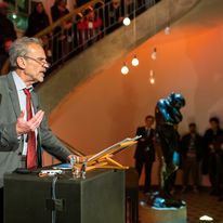 In der abschließenden Festrede beleuchtete der renommierte Kunsthistoriker und Bildwissenschaftler Prof. Dr. Horst Bredekamp, Professor an der Humboldt-Universität zu Berlin, unter dem Titel »Metamorphosen von Rodins Eva« die Entstehung der Bronzeplastik und zeigte verschiedene Perspektiven der Wirkung und Geschichte des Werkes auf. Bredekamp lobte die Entschlossenheit, mit der die Bauhaus-Universität Weimar auf den Vorfall reagierte. »Der Angriff der Eva reiht sich bedauerlicherweise in eine Reihe von Angriffen gegen Kunstwerke auf der ganzen Welt ein, besonders anstößige Kunstwerke werden immer wieder zur Zielscheibe von Taten des Vandalismus. Umso bedeutsamer ist die große Entschlossenheit, mit der an der Bauhaus-Universität Weimar das Entsetzen über diese Tat in eine augenblickliche Initiative umgepolt wurde, die Eva zu restaurieren und in ihrem geheilten Zustand so bald als möglich wieder aufzustellen. Die Art in der diese Hochschule auf diesen Fall reagiert hat, nötigt Respekt ab und macht Mut«, so Bredekamp.