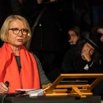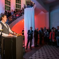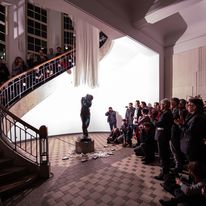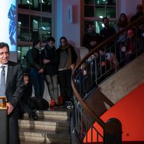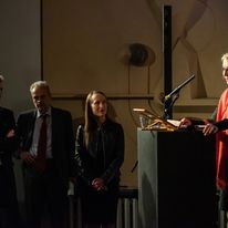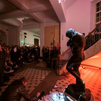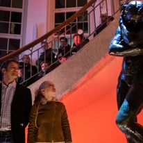 »Die ›Eva‹ war eigentlich immer schon hier«, betonte Prof. Dipl.-Ing. Dipl.-Des. Bernd Rudolf, Dekan der Fakultät Architektur und Urbanistik, in seinem Grußwort. »›Eva‹ ist eine Konstante, eine vertrauensstiftende Gestalt und ein guter Geist für alle Besucherinnen und Besucher und für die Studierenden sowie Mitarbeiterinnen und Mitarbeiter dieser Universität.« Rudolf erinnerte auch an die stets starke Eingebundenheit der Plastik in das universitäre Leben an der Bauhaus-Universität Weimar: »Rodins ›Eva‹ war die Referenzfigur für viele Veranstaltungsformate und sie wird es hoffentlich für lange Zeit wieder sein«, so Rudolf. Dirk Slawinsky richtete sich in seiner Rede mit einem persönlichen »Du« an die Eva und begrüßte sie mit ihren »212 Semestern« als »älteste Kommilitonin« zurück an der Universität. Slawinsky bedankte sich als Vertreter des StudierendenKonvents (StuKo) im Namen aller Studierenden der Bauhaus-Universität Weimar für die Unterstützung bei der Restaurierung.