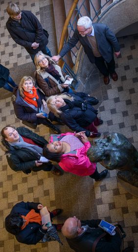 Im Zuge ihrer Jahrestagung haben am Mittwoch, 29. Januar 2013, zehn britische Reisejournalistinnen und -journalisten die Bauhaus-Universität Weimar besucht. Sie wurden vom Rektor Prof. Dr.-Ing. Karl Beucke im Foyer des Hauptgebäudes empfangen und erhielten im Anschluss eine kurzweilige Bauhaus-Spaziergangs-Führung durch die Welterbestätten der Universität und das Haus Am Horn.