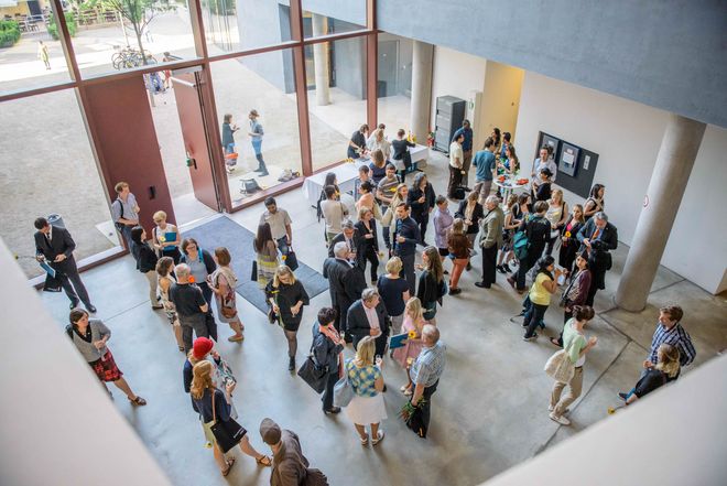 Geführt von einem Guide des Bauhaus-Spaziergangs durch den Ilmpark konnten die geehrten Stipendiatinnen und Stipendiaten mit ihren Gästen und Betreuern im Anschluss den Abend bei der Vernissage zur Stipendienausstellung »Ausgewählt« im Haus am Horn ausklingen lassen. Die Stipendienausstellung »Ausgewählt« ist noch bis zum 9. August 2015 im Haus am Horn zu sehen.