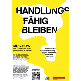 Nicht erst mit den Landtagswahlen 2024 und den Bundestagswahlen 2025 wird sichtbar, wie demokratiefeindliche Positionen salonfähig werden. Das ist gefährlich für den gesellschaftlichen Zusammenhalt und berührt auch unsere universitäre Praxis. Im Thüringer Landtag erhielt eine erwiesen rechtsextrem eingestufte Partei sogar die meisten Stimmen. Viele Studierende organisieren sich dagegen antifaschistisch und demokratisch. Und in Verteidigung von Demokratie und Vielfalt lasst sich auch im Kleinen bereits etwas tun: Handlungsfähig bleiben können wir im Alltag, in Gesprächen im beruflichen oder familiären Umfeld, im Studium, auf der Straße.