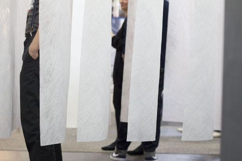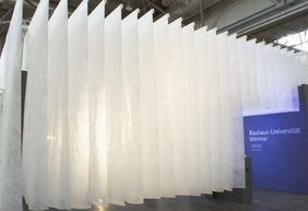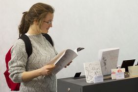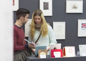 Das Publikum an diesem Donnerstag ist gemischt, hat Spaß an den hin und her schwingenden Stoffbahnen und stellt viele Fragen. Diese beantworten die 15 beteiligten Studierenden gern, haben doch alle in den letzten Wochen viel Herzblut in das Projekt und die Umsetzung gesteckt. »Natürlich sind wir nicht immer alle gleichzeitig hier«, erzählt Ken, »dafür würde der Platz nicht reichen. Aber es ist schon toll, die Besucher und ihre Reaktionen direkt zu erleben. Viele bleiben ziemlich lange, bis zu einer halben Stunde, vertiefen sich in die Bücher, wollen etwas zu unseren druckkünstlerischen Arbeiten wissen oder den Stand unbedingt fotografieren.«