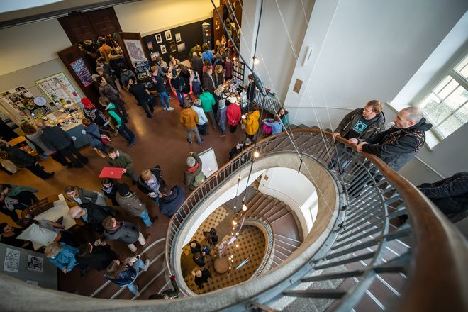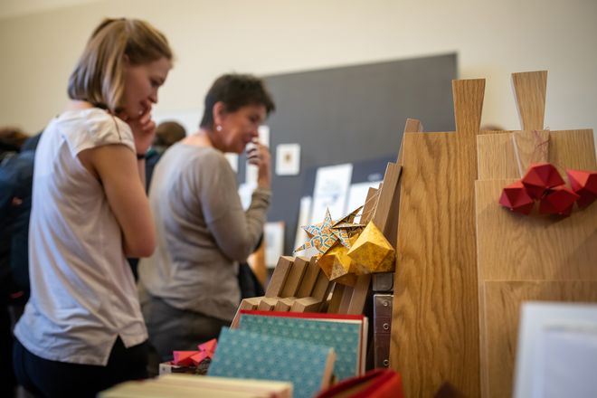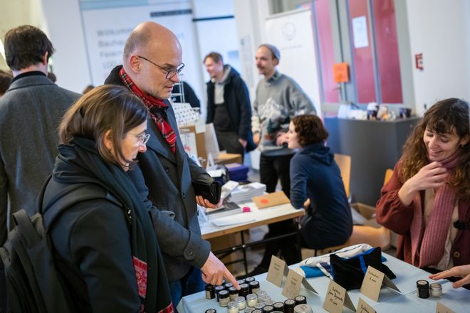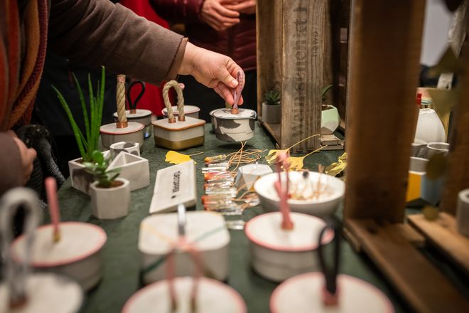 Der Bauhaus-Weihnachtsmarkt »Kauf Dir ein Stück Bauhaus« lockte am vergangenen Samstag wieder zahlreiche Gäste an die Bauhaus-Universität Weimar. An über 70 Ständen konnten die Besucherinnen und Besucher einzigartige Kreativprodukte stöbern, ungewöhnliche Lebkuchenarchitektur beim traditionellen »LebkuchenHausWettbewerb« bewundern oder sich selbst in der Bastellwerkstatt kreativ ausleben. In unserer Bildergalerie lassen wir den Weihnachtsmarkt noch einmal Revue passieren. (Fotos: Thomas Müller)