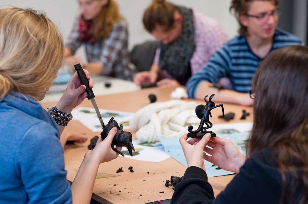 Ihren Gewinn, eine Klassenfahrt nach Weimar und an die Bauhaus-Universität Weimar lösten die Gymnasiasten soeben – Anfang Oktober – ein. Als Teil des gewonnenen Programms konnten die Schülerinnen und Schüler den Campus, die Werkstätten und die Projekträume der Universität besichtigen. Als Höhepunkt durften sie in einem Workshop ihrer eigenen Kreativität freien Lauf lassen: mit Modellierwachs gestalteten sie Figuren und Köpfe, die in einem späteren Verfahren in Bronze gegossen werden sollen.