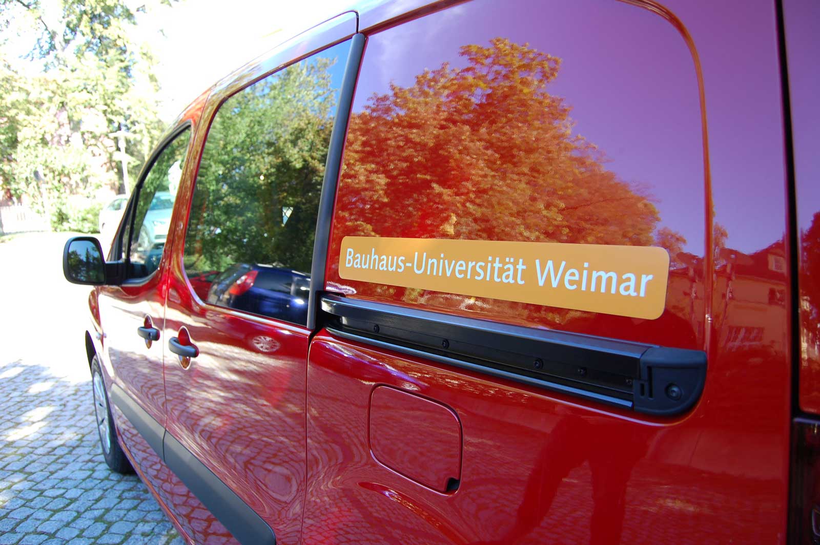 Seit kurzem ist der Fuhrpark der Bauhaus-Universität Weimar um eine umweltschonende Neuerung reicher: ein Fahrzeug, das für den Transport der Post der Universität und teilweise der Hochschule für Musik Franz Liszt in Einsatz ist, fährt mit Elektro-Antrieb.