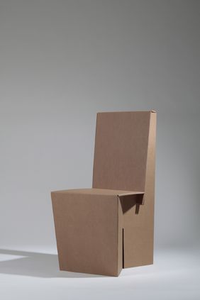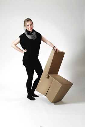 Deutlich wird dies ihrem ersten marktreifen Produkt, einem Stuhl. Aus dem scheinbar minderwertigen Material Pappe wird durch ausgeklügelte Faltungen ein faszinierendes Wohnobjekt, das auch noch einen Mehrwert birgt. Der Stuhl besteht aus zwei Teilen, die ineinander gesteckt werden und benötigt keine komplizierten Verbindungsmittel wie Schrauben oder Kleber. In einem handlichen Pappkoffer ist er leicht zu transportieren und mit der beigelegten Anleitung schnell aufgebaut.
