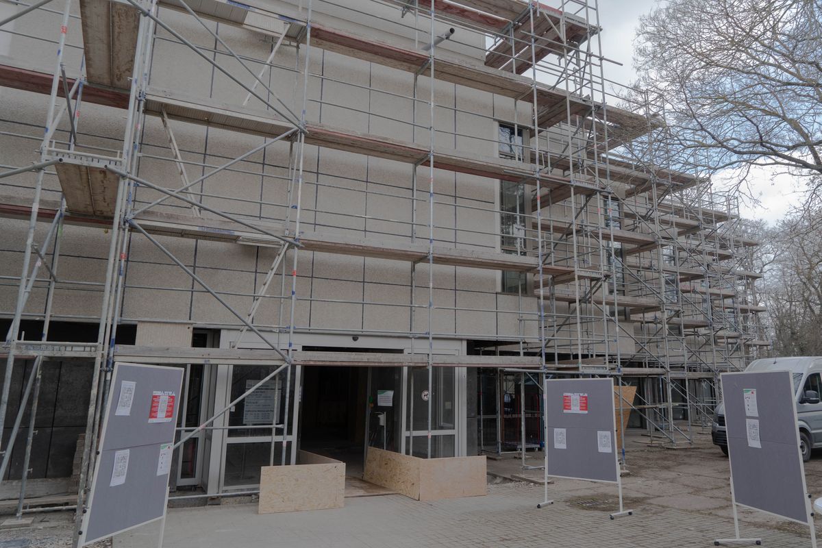 Seit Februar 2020 wird das fast 40 Jahre alte DDR-Gebäude denkmalgerecht saniert. Die Rohbauarbeiten sind nun abgeschlossen – trotz der Corona-Pandemie konnte der Zeitplan bisher eingehalten werden.