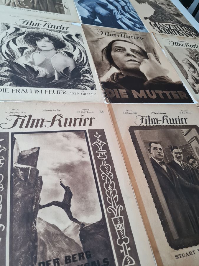 Bei den Film-Kurier-Ausgaben reihen sich deutsche und österreichische Produktionen, unter anderem mit Luis Trenker in seinem ersten Film, der zugleich der erste Bergfilm sein wird, Lya de Putti, Asta Nielsen, Buster Keaton und Harry Piel, an US-amerikanische oder sowjetische Filme. Informationen zu Regie und Darstellung sind ebenso enthalten wie Angaben zu Vertrieb und Verleih der Filme.