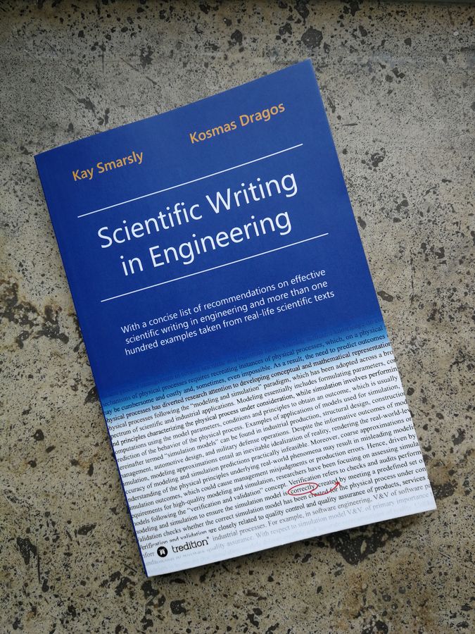 Gemeinsam mit Kosmas Dragos konzipierte Prof. Dr.-Ing. Kay Smarsly von der Bauhaus-Universität Weimar das handliche Sachbuch »Scientific Writing in Engineering«, welches seit 2019 im Handel erhältlich ist. Mit mehr als hundert Praxisbeispielen soll es Akademikerinnen und Akademikern ingenieurwissenschaftlicher Disziplinen bei der Umsetzung englischsprachiger Artikel unterstützen.