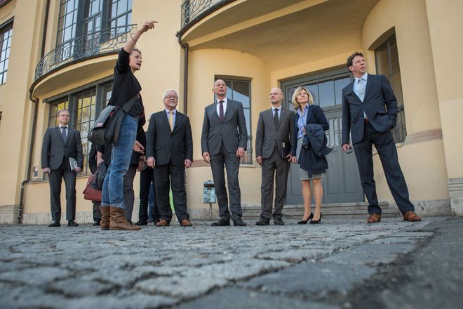 Zum Auftakt erhielt der Minister vom Rektorat und den Dekanen der Fakultäten Architektur und Urbanistik, Bauingenieurwesen, Gestaltung sowie Medien einen Überblick über aktuelle Schwerpunkte wie etwa das Bauhaus-Jubiläum 2019 oder die internationalen Kooperationen der Universität. In diesem Zusammenhang bemerkte Tiefensee, dass er ein großes Potenzial im Ausbau der Beziehungen mit dem afrikanischen Kontinent sähe.