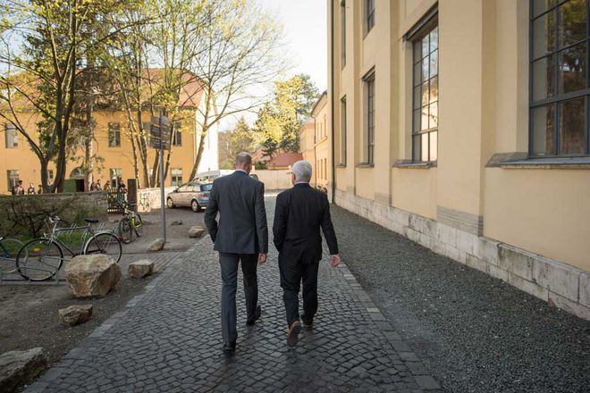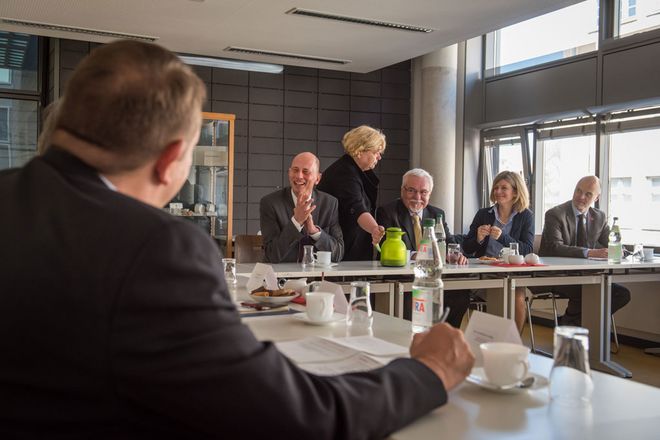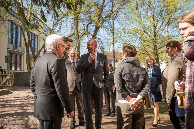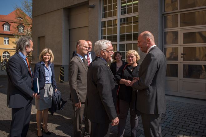 So lautete das Resümee des Thüringer Wissenschaftsministers Wolfgang Tiefensee bei seinem Antrittsbesuch am Donnerstag, 23. April 2015, an der Bauhaus-Universität Weimar. Während seines zweistündigen Aufenthalts führte der Minister unter anderem Gespräche mit dem Rektorat und den Dekanen der vier Fakultäten, hatte Gelegenheit, den StuKo-Vorstand und die »M18« kennenzulernen und zudem Labore in der Coudraystraße 11 zu besichtigten.
