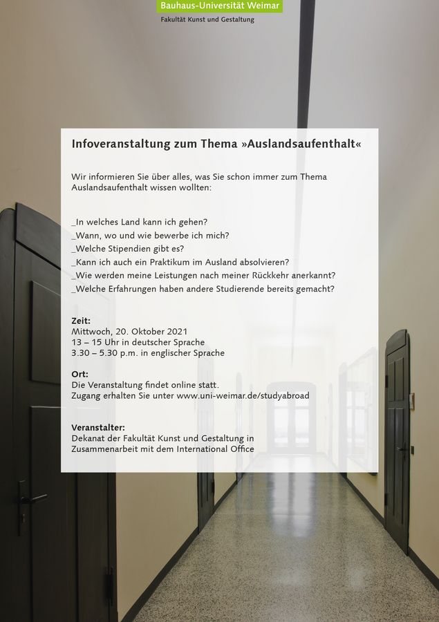 Dekanat der Fakultät Kunst und Gestaltung in Zusammenarbeit mit dem International Office
