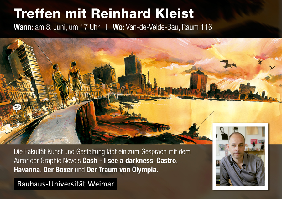 Die Fakultät Kunst und Gestaltung lädt am Mittwoch, 8. Juni 2016, zu einem Vortrag von Reinhard Kleist in die Van-de-Velde-Werkstatt ein.