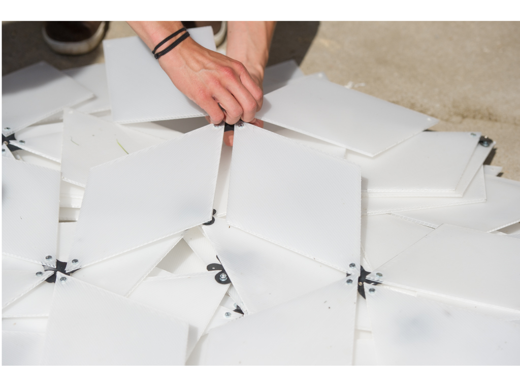 Die Projektideen wurden zu Semesterbeginn in einem breit anlegten Stegreifentwurf durch Konkurrenz aller Teilnehmer ermittelt. Anschließend wurden Teams für die Umsetzung gebildet. Auswahlkriterien waren unter anderem, verantwortungsvoll mit den zu nutzenden Ressourcen umzugehen und ohne zusätzliches Geld auszukommen. So erhalten vertraute Produkte und Materialien in den Pavillons die Chance zu einem zweiten oder dritten Leben. Fest steht: Die Studierenden sind in den letzten Monaten auch zu Experten der Physik geworden. Ob Kinetik, Spannung, Widerstand oder Rotation – diese physikalischen Phänomene spielen bei den Pavillons eine wichtige Rolle.