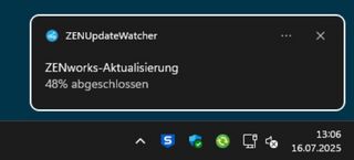In den folgenden Tagen findet auf allen zentral betreuten Windows Computern ein Update des Zenworks-Verwaltungsagenten statt. Sie werden u.U. folgende Meldungen auf dem Bildschirm sehen. (ABB1)