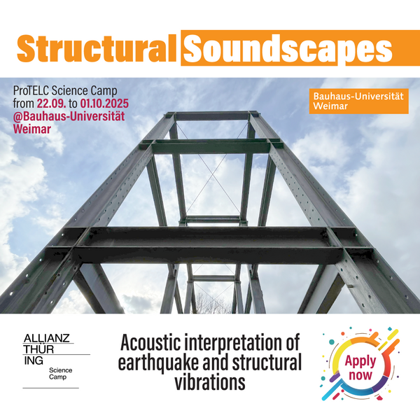 wir freuen uns, Sie zum nächsten ProTELC Science Camp zum Thema „Structural Soundscapes - Akustische Interpretation von Erdbeben und Bauwerkserschütterungen“ einzuladen.