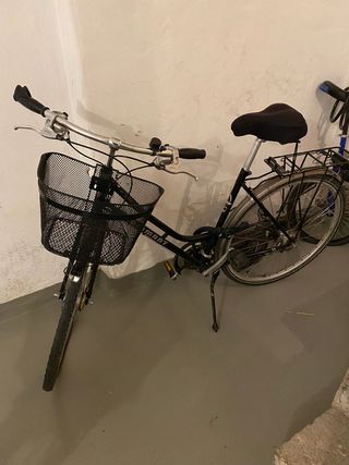 Das alte muss dem neuen Fahrrad Platz machen. Deshalb verschenke ich mein Fahrrad an eine Studierende. Der vordere Schlauch im Reifen müsste bald mal gewechselt werden und die Gangschaltung braucht auch etwas Wartung. Der Korb am Lenker ist leicht beschädigr, erfüllt aber noch seinen Zweck.