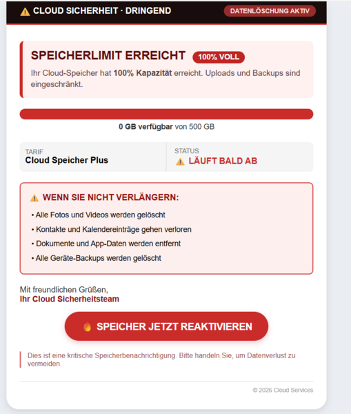 ⚠️ CLOUD SICHERHEIT · DRINGEND DATENLÖSCHUNG AKTIV