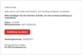 Betreff: DPD Paket. - ID:253561574086 2/3/2026-15:58:54