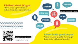 Register now until 13 April at the Language Centre for the 2026 summer semester! There are limited places available in German-language-courses as well as in some of the courses below.