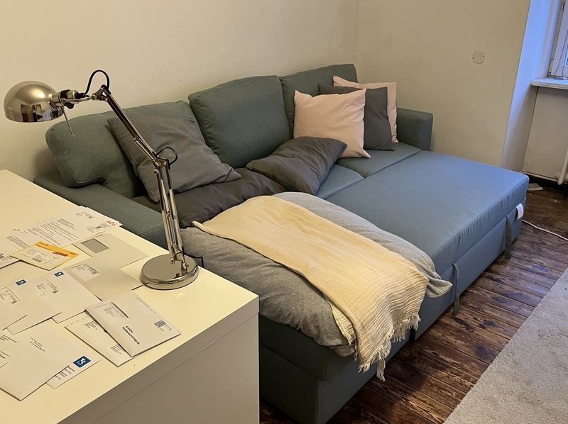 Das Sofa muss durch ein enges Treppenhaus transportiert werden, bitte kräftige Träger*innen mitbringen.