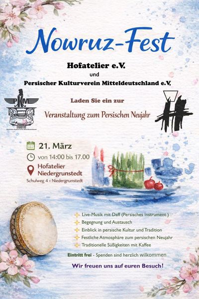 I am forwarding to you the invitation to the Nowruz celebration at Hoftelier, Niedergrunstedt, e.V. You May be interested in attending the event. (on March 21, 2026, 2:00–5:00 p.m.) With kind regards, Büro der Ausländerbeauftragten Herderplatz 14 | 99423 Weimar