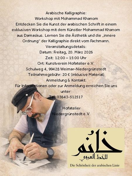 am 20. März findet im Hofatelier von 12:00 bis 15:00 Uhr eine offene Kaligrafie-Aktion statt.