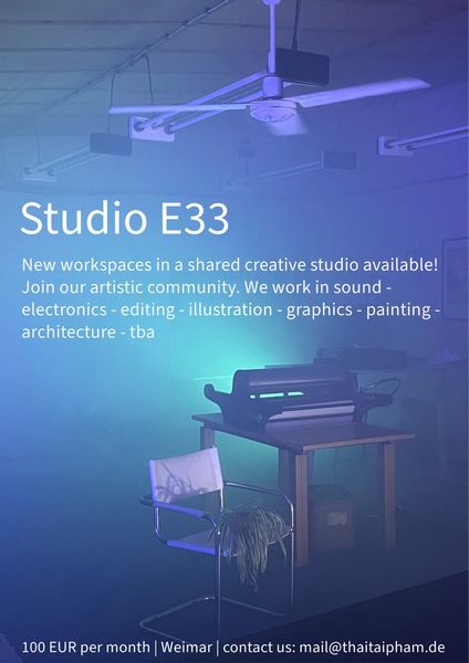 In our community, we work very individually in different areas such as photography, illustration, graphic design, painting, music, architecture, instrument making, electronics, etc. The studio on Erfurter Straße is also very centrally located in Weimar and is easily accessible on foot and by bus in all directions. The rent is currently €100.00 including utilities.