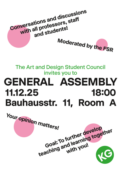 Together with students, staff and teachers, we want to discuss how we can improve the study experience at our faculty. For this, the Art and Design Student Council invites you to this year's faculty general assembly.