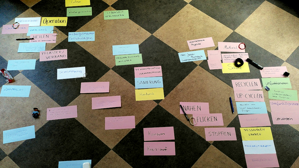 Alles neu, alles schön? Nicht hinterfragt, gilt die Reparatur vielleicht noch immer als die zweitbeste Option nach dem Neukauf, der Abriss hat nicht selten Vorrang vor der Sanierung, das Wegwerfen vor dem Erhalten. Das Projekt hat sich dagegen ganz praktisch, konzeptuell, theoretisch und ästhetisch das Ziel gesetzt, im gemeinsamen Austausch künstlerische Alternativen zu suchen, die nicht die schlechtere Wahl sind, und sich auf die Spur von Reparaturtechniken zu begeben, um diese zu sammeln, Anleitungen zu erstellen und gelungene Reparaturen zu zeigen und zu vermitteln. So sind Positionen entstanden, die neben konkreten Gegenständen und Objekten auch die Reparatur von Körpern bis hin zu gesellschaftlichen Beziehungen thematisieren.
