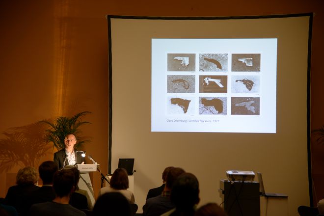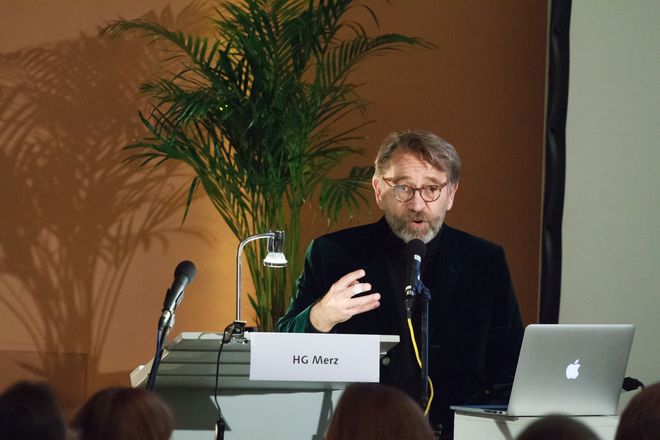 Bereichert wurden die hauseigenen Beiträge durch den Gastvortrag von Prof. HG Merz, Mitglied des Universitätsrates der Bauhaus-Universität Weimar. Mit einer Fülle von Bildern - Beispiele seiner Arbeit als Ausstellungsarchitekt - entführte er das Publikum in verschiedenste Museen, Kultur- und Gedenkstätten und reflektierte über das „Zweite Leben der Dinge“ und die Bedeutung von Ausstellungsarchitektur für die Dekontextualisierung und Rekontextualisierung von Dingen.