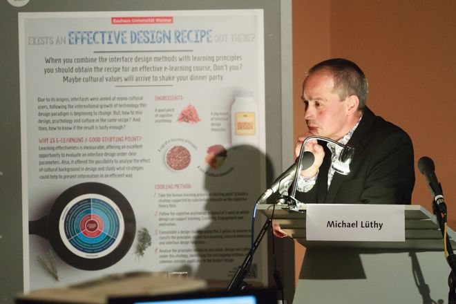 Für einen kurzweiligen und unterhaltsamen Perspektivwechsel sorgte wieder der wissenschaftliche und künstlerische Nachwuchs beim alljährlichen Nachwuchswettbewerb. Zehn Promovierende und Masterstudierende aus allen Fakultäten stellten auf Postern ihre Forschungsfragen vor, präsentierten sie im sogenannten „Elevator Pitch“ innerhalb von nur 90 Sekunden und stellten sich der Bewertung des Publikums sowie der interdisziplinären Jury (Dr. Luise Nerlich, Raimo Harder, Jens Hauspurg, Jun.-prof. Dr. Florian Echtler).