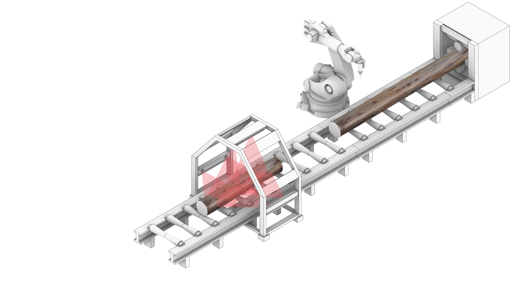 Der heutige Holzbau nutzt die Möglichkeiten computergestützter Fertigung, um mit standardisierten Holzmaterialien komplexe Entwürfe umzusetzen. Der hier verfolgte Ansatz hat zum Ziel, Baumstämme in ihrer Rohform zu verwenden. Im traditionellen Blockhausbau wird dies seit Jahrtausenden praktiziert. Die Stämme werden entrindet und aufeinander angepasst zu einer massiven Wand gestapelt. Dieser ressourcenschonende Ansatz erfordert allerdings ein großes handwerkliches Geschick. Um den Blockhausbau zu modernisieren und die Möglichkeiten computergestützter Fertigung und digitaler Planung auszuschöpfen, wurde eine alternative Prozesskette erprobt. Die geschlagenen Baumstämme wurden 3-D gescannt und anschließend digital weiterverarbeitet. Mithilfe