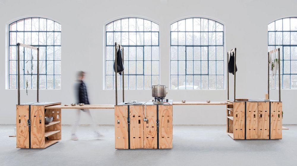 A self-sufficient pop-up kitchen functioning outdoors and made for communities. With the kitchen workshop, we create a social center: Cooking and eating becomes a collective experience. The process, from the seeds of a plant to a shared meal, serves as a symbol of the design. To raise awareness of the food value chain, each module is dedicated to one processing step: harvesting, washing, chopping, cooking and composting. The kitchen's surfaces are used as worktops during the act of cooking and are turned into tabletops for the shared meal. Both of these collaborative acts are stimulating social encounters.