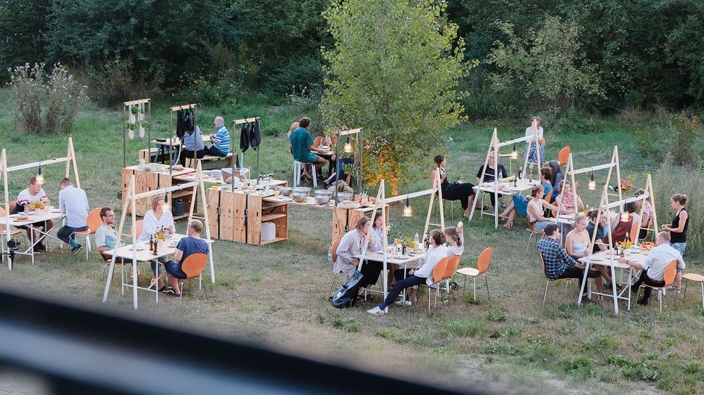 In summer 2020, the workshop kitchen was integrated into collaborating communities. First, mahl x zeit was used during a residency at the "Open Factory im Eiermannbau". The workshop kitchen was then tested by the Weimar housing cooporation "Wohnprojekt Ro70". At the "summaery2021", we offer 100 bites of a simple meal.