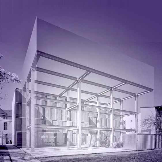 (Werkstattkubus Süd-Fassade, Projektion im x.stahl) - Belvederer Allee 1c - x.stahl