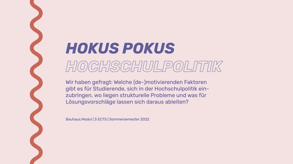 Im Seminar „Hokus Pokus Hochschulpolitik” wollten wir gemeinsam mit Studierenden aller Fakultäten – egal ob bereits aktiv oder ganz neu – herausfinden, woran das liegt. Welche (de-)motivierenden Faktoren gibt es für Studierende, sich in der Hochschulpolitik einzubringen, wo liegen strukturelle Probleme und was für Lösungsvorschläge lassen sich daraus ableiten? Wir haben analysiert, Gespräche geführt, Umfragen gestartet und schließlich konstruktive Vorschläge erarbeitet um dem Mysterium Hochschulpolitik auf den Grund zu gehen.