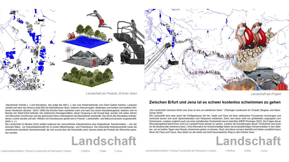 In zwei Übungen werden verschiedenen Themen der Landschaftsarchitektur behandelt und erprobt.