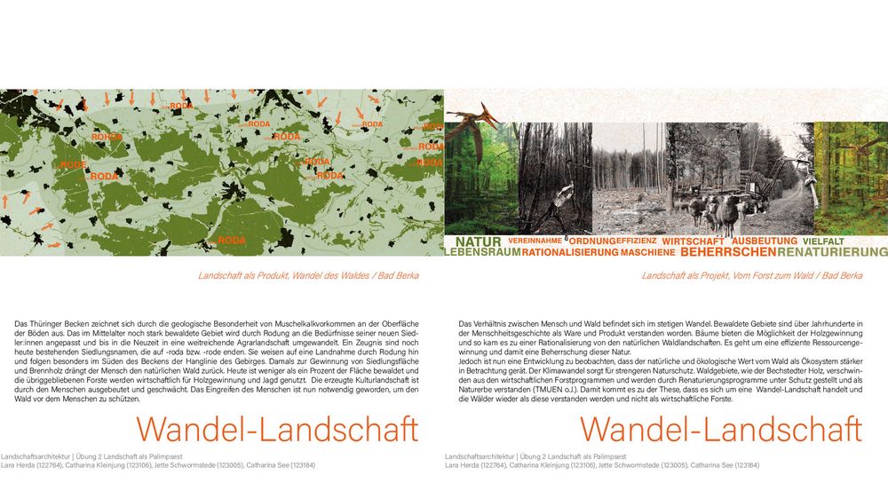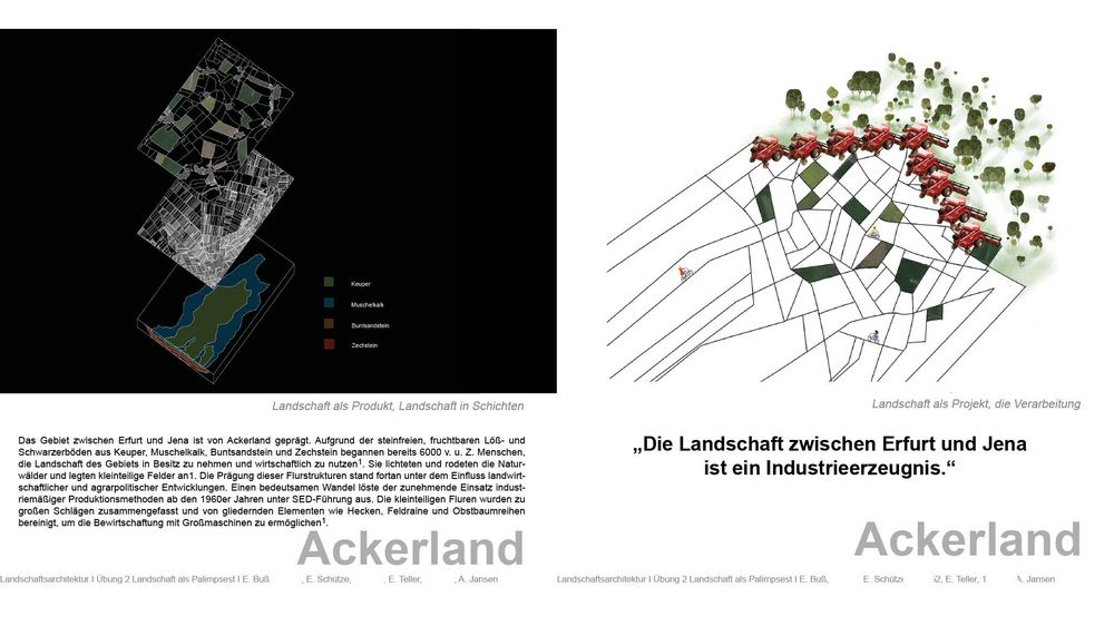 Landschaft als Palimpsest erkundet die gegenseitige Wechselbeziehung menschlicher und natürlicher Faktoren in der Produktion der thüringer Landschaft zwischen Erfurt und Jena.