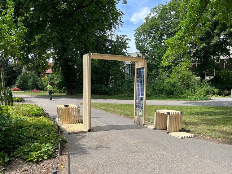 Dazu werden modulare Funktionsbausteine entworfen, die das kreative Milieu der Bauhaus-Universität durch Mikroarchitekturen im Campus repräsentieren und die etablierte Muster der Kommunikation während der Sommerausstellung im Freiraum unterstützen.