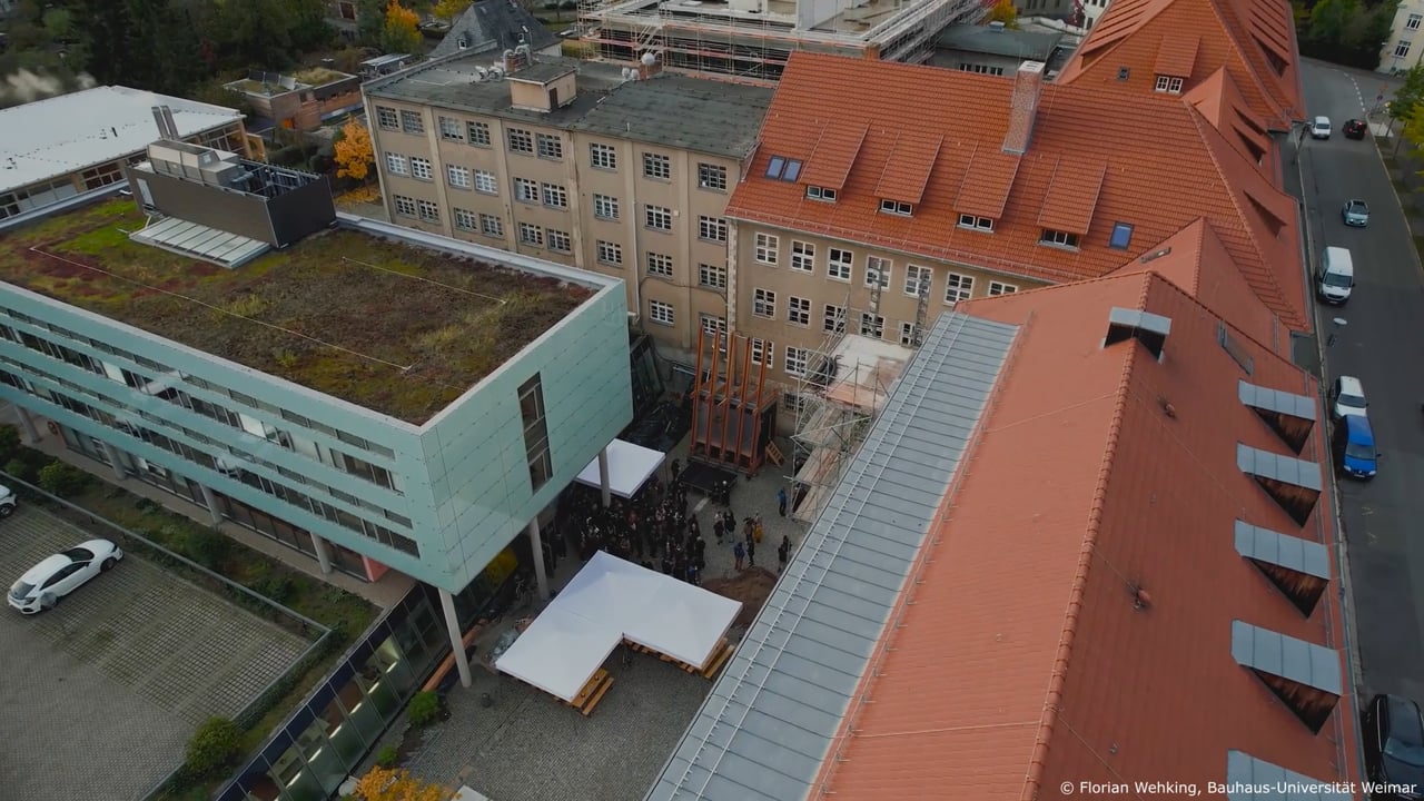 Im Zuge des Wintersemesters 2022/23 entwarfen und planten Studierende in interdisziplinären Teams an der Professur Bauphysik ein Gebäude – den Bauhaus Energy Hub – welcher nachhaltige und zukunftsweisende Architektur-, Energie- und Nutzungskonzepte an der Bauhaus-Universität Weimar repräsentiert. Im Sommersemester 2023 wurde dieser schließlich bis zum Rohbau auf dem Campus in der Coudraystraße errichtet.