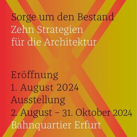 In direkter Nähe zum Hauptbahnhof gelegen, wartet das über viele Jahre abgeschottete Bahnhallenquartier auf eine vielfältige (Wieder-)Belebung für die Öffentlichkeit. In der provisorisch gesicherten Westhalle bietet die Ausstellung „Sorge um den Bestand“ Ausblicke auf Künftiges. Bis zum 31. Oktober 2024 laden Gesprächsrunden, Symposien und weitere Veranstaltungen zur offenen Diskussion über Ideen und Konzepte für eine ökologisch und sozial verantwortliche Weiterentwicklung des Bahnhallenquartiers für Erfurt.