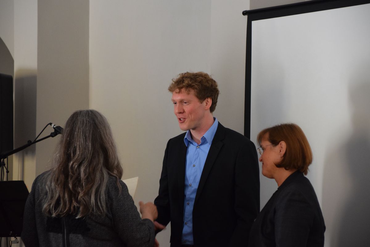Das Thüringer Arbeits- und Sozialministerium zeichnet die von der Bauhaus-Universität Weimar patentierte Arbeitsschutzorthese »backup« mit dem Thüringer Arbeitsschutzpreis aus. Dr. Kristina Margarete Schönherr, Dezernentin für Forschung, nahm stellvertretend für die Universität gemeinsam mit dem Erfinder Ronny Staps am 22. Mai 2017 das Preisgeld in Höhe von 1500 Euro und die Urkunde in Erfurt entgegen.